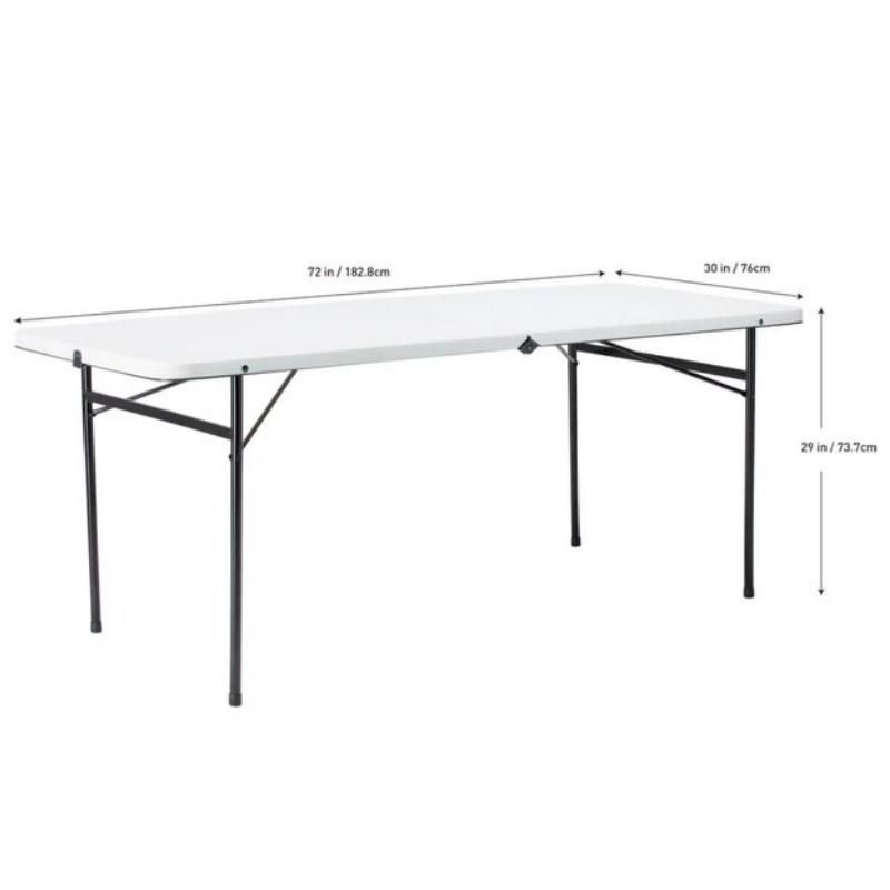Measuring 72″ L x 30″ W x 29″ H when unfolded, this table comfortably seats up to 8 adults, providing ample space for a variety of uses. Whether it’s for serving meals, displaying crafts, or holding various items for your projects, this table has got you covered.