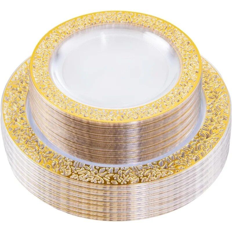 Upgrade your dining experience with our I00000 96pcs Gold Plastic Plates – a perfect blend of sophistication and convenience. Crafted with precision, these clear and gold disposable plates are not just dinnerware; they are a statement piece that elevates your events to new heights.