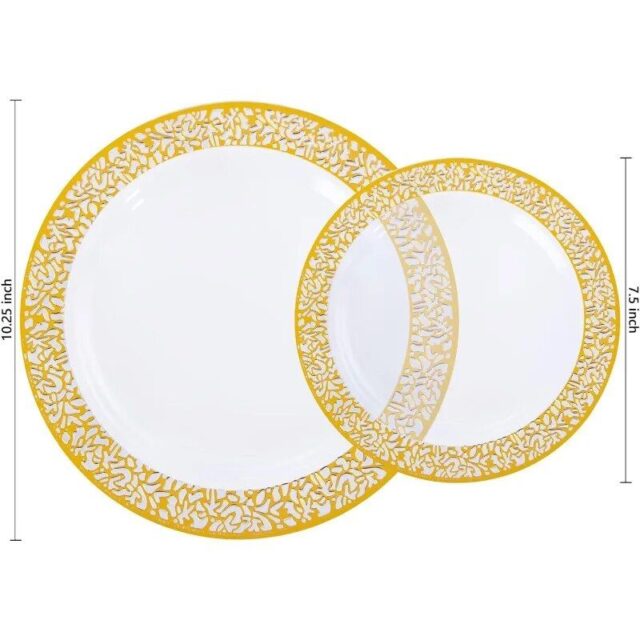 - Perfect for All Occasions: Whether it’s a grand celebration or an intimate gathering, these gold rim plastic plates are your go-to choice for hosting without the worry of cleaning up.