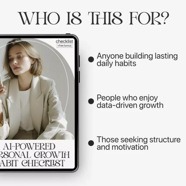The AI-Powered Personal Growth Habit Checklist is your guided system for building better daily routines using the power of technology. Whether you’re tracking your health, mindfulness, learning, or productivity, this digital download shows you how to combine structure and automation to make personal growth easier, smarter, and more consistent. Designed around personal growth habits AI tracking, it helps you identify priorities, automate reminders, and measure progress — all while adapting to your pace and goals.