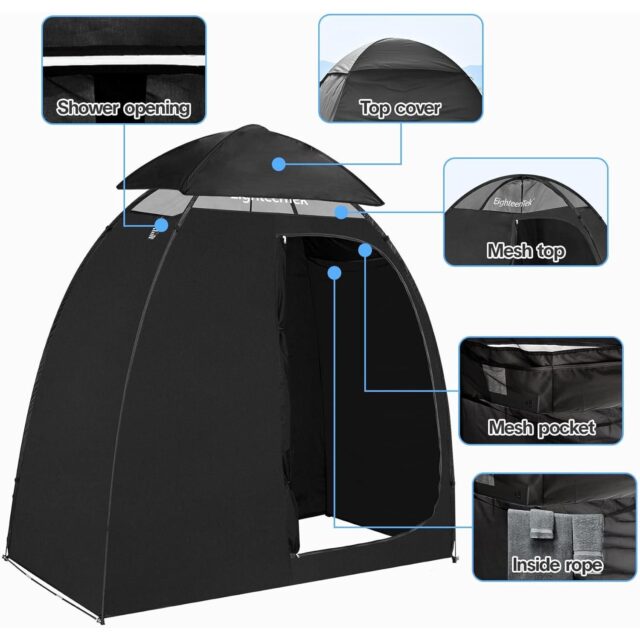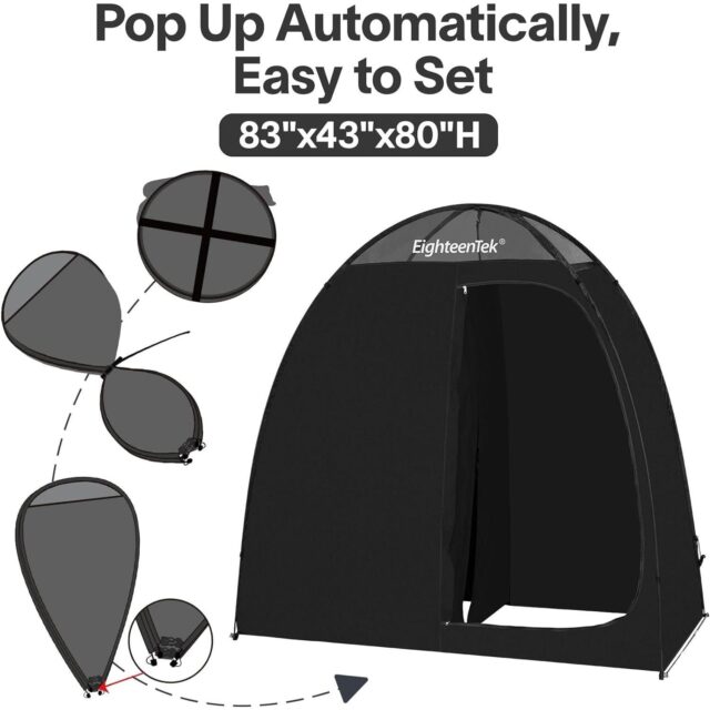This versatile outdoor shower tent and changing room is not limited to camping alone. Whether you’re at the beach, in a photo studio, or attending a dance class, it provides the perfect private space for changing, showering, using the restroom, spraying paint, and more. It’s your go-to solution for a mobile camp restroom, storage, portable toilet tent, and privacy shelter, catering to all your needs.