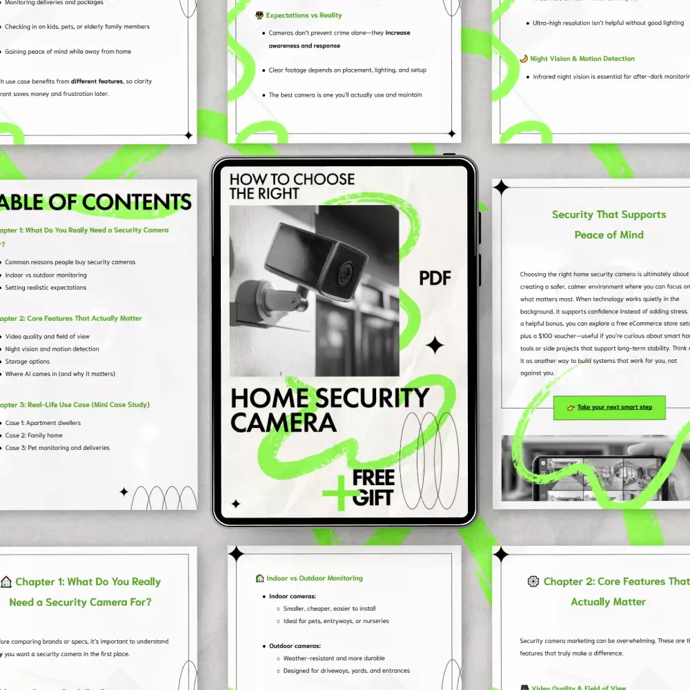 Choosing the right security camera can feel overwhelming, especially with so many brands, features, and tech buzzwords competing for your attention. How to Choose the Right Home Security Camera is a practical, easy-to-follow digital guide designed to help you cut through the noise and make a confident buying decision. Whether you’re protecting your home, keeping an eye on pets, or monitoring deliveries, this guide walks you through exactly what matters and what doesn’t—without technical jargon or sales pressure.