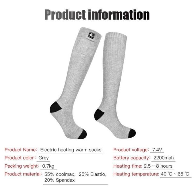 What sets our heated socks apart is not just their ability to keep you warm, but also their construction. The use of high-quality, imported materials extends their lifespan, while the inclusion of a 7.4V UL/CE certified 2200mAh lithium-ion rechargeable battery ensures reliability and safety. Easy to control temperature settings allow for personalized comfort, making them perfect for skiing, cycling, motorcycling, hiking, fishing, hunting, and any outdoor activity in cold weather.