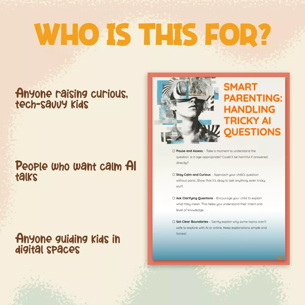 Turn uncertainty into connection. Download Smart Parenting: Handling Tricky AI Questions today and empower your family with knowledge, calm, and confidence every time technology sparks curiosity.