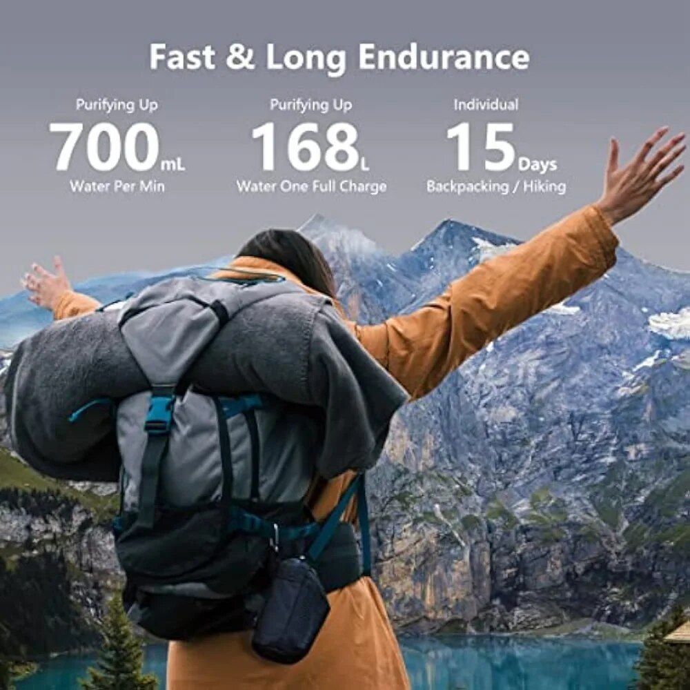 Whether you’re backpacking, camping, hiking, or preparing for emergencies, this purifier is your reliable hydration partner. It’s not just a water filter; it’s an investment in your health and safety. The large-capacity battery and convenient charging options ensure you’re never without clean water. The backwash system extends the filter’s life, making this a durable and economical choice.