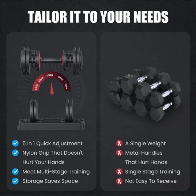 Don’t wait to take your workouts to the next level. Invest in the Versatile 55LB Adjustable Dumbbell today and experience the transformation in your fitness routine.