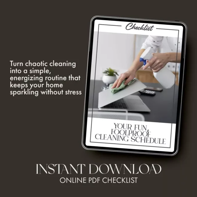 Stop feeling buried under laundry piles and start enjoying a home that shines on autopilot. Download Your Fun, Foolproof Cleaning Schedule Checklist now and discover how to create a cleaning schedule that works—one that fits your life, not the other way around. Turn your to-do list into a “done” list and make cleaning feel easy, satisfying, and even a little fun!
