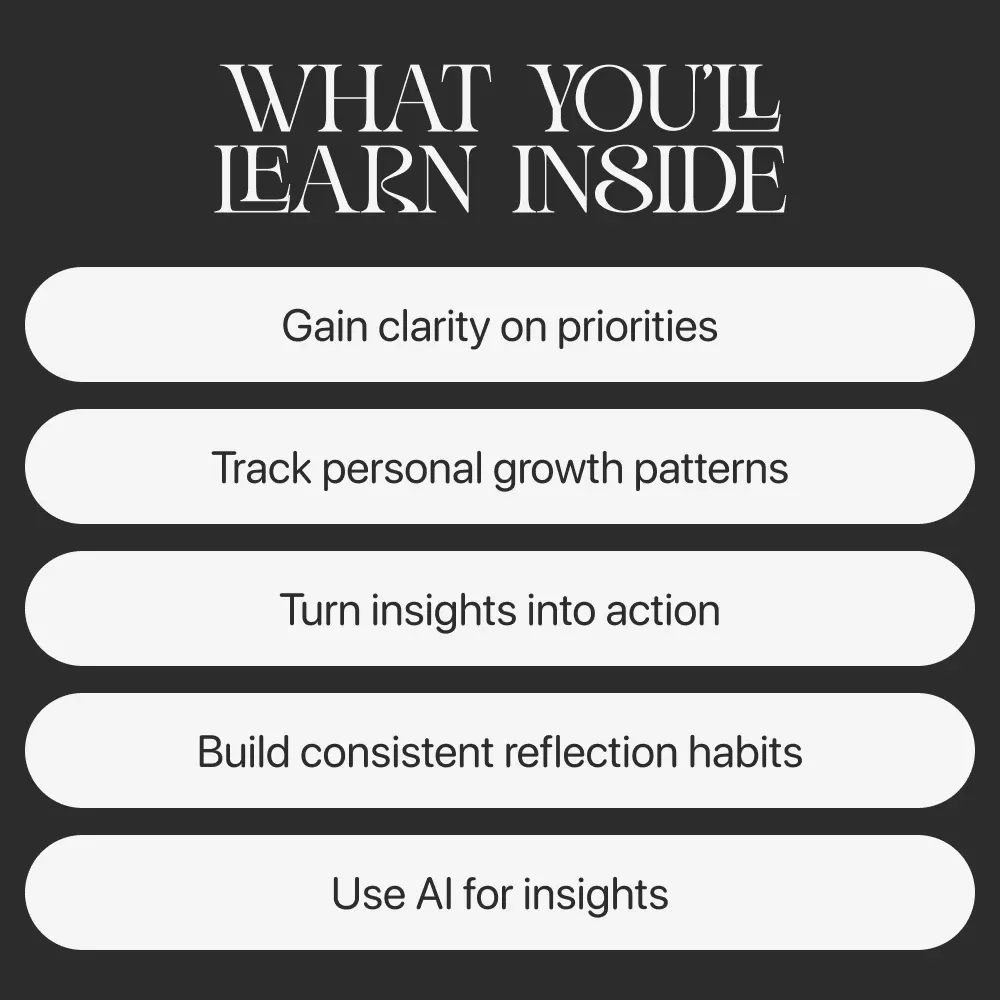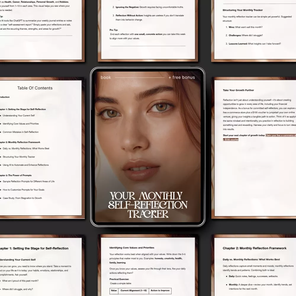 This monthly self reflection tracker is perfect for self-growth seekers, busy professionals, students, mindfulness lovers, and anyone who wants to build emotional awareness and personal direction. Unlike generic journals, this ebook combines structured frameworks, modern tools like AI integration, and proven techniques for long-term transformation. It doesn’t just help you reflect — it teaches you how to spot patterns, measure growth, and take action. You’re not just writing thoughts; you’re creating a roadmap for your future self.
