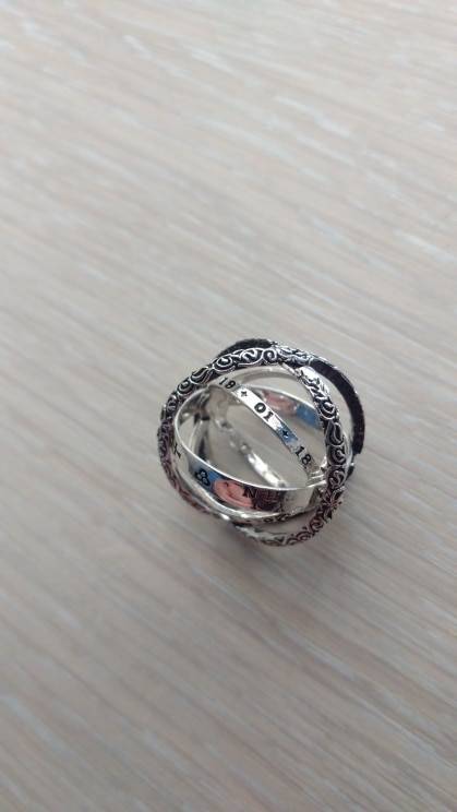 This astronomical finger ring is a really unique design. It is engraved with different words like love, loyal, peace, courage, and forever. And the inner ring has the 12 horoscope signs engraved on it. The rings are sturdy and well made. And it fits well on my finger without making it turn green. This ring is really pretty on.
