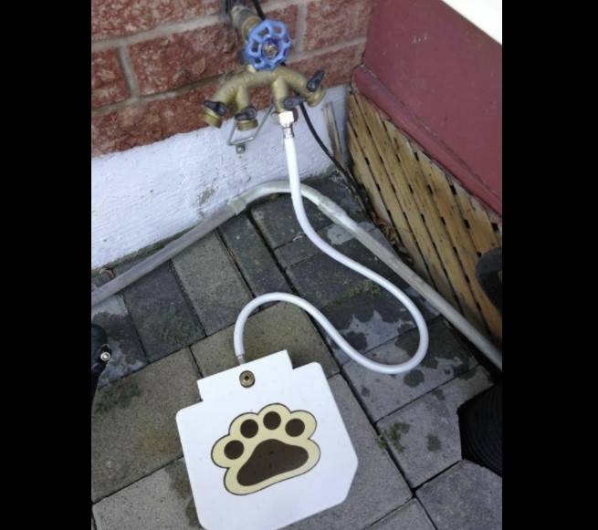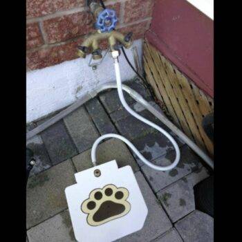 When you buy our dog water fountain, it comes with a two-way splitter attachment for your water valve, letting you use your normal garden hose and Automatic Outdoor Dog Water Fountain at the same time. A pressure adjustment valve on each split allows you to control flow and pressure to train your pooch into using the fountain.