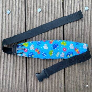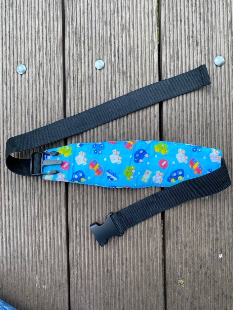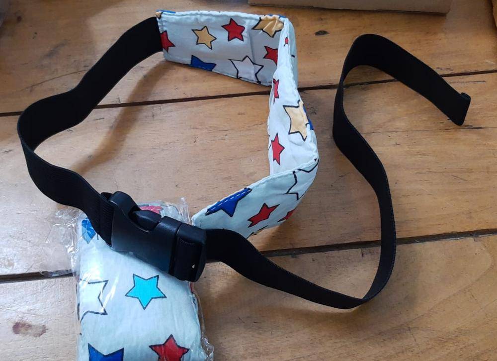 Our Baby Car Seat Head Support Band features an elastic band with a buckle and adjustable length strap. All you have to do is strap around your stroller or car seat where your little one’s forehead is so when he falls asleep, his head will stay upright.