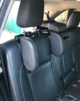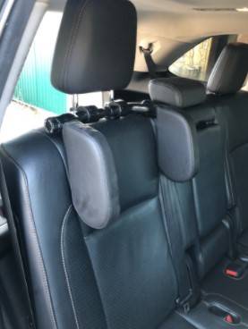 This thing is great!! I finally pulled the trigger and bought one for my 6 yr old and 10 yr old to use on a car trip we're taking this weekend. I have a Ford Explorer, 3 kids in the second row, 1 cart seat. My 6 yr old and 10 yr old are going to use this between them and then the carseat is on the other side to use as a headrest. They also have those neck pillows, but they don't like to use them for some reason. I'm so glad I finally got this. It looks really nice, very easy to move into any position and fits snug and tight on the headrest. My husband tried it out last night and approves as well.
