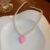 The necklace boasts a delicate iron link chain adorned with lustrous imitation pearls, creating a balance of strength and sophistication. The centerpiece is a beautifully crafted heart-shaped pendant, exuding an air of cute and romantic allure. With its unique floral pattern, this necklace stands out as a fashion-forward choice.