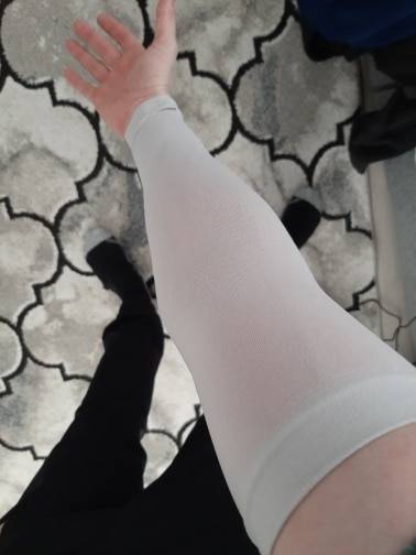 These Sleeves feel so good on your arms! They have just the right compression to tone-up your arms and the material is very soft you want to wear them all day. I like to wear them when doing my house cleaning as they help me to sweat so I feel like I'm getting double the exercise and toning all in one. This is a wonderful buy that is comfortable and helps to tone your arms all in one!