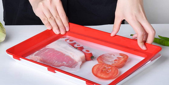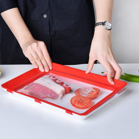 Less bulk, more room. Stockpiling leftovers and ingredients into the fridge can turn into a war. That’s why our Creative Reusable Food Storage Tray is a kitchen-smart solution for cutting storage bulk while maximizing your fridge space.