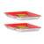 Our trays are made of polypropylene plastic, with the wrap being advanced elastic film. All trays are white with a red border frame for the film cover. Each tray measures 9 x 12 x 1.14 inches (L x W x H).