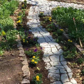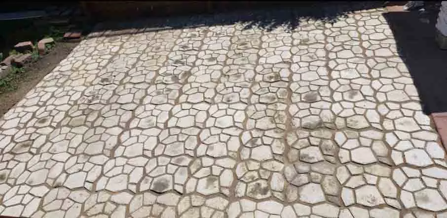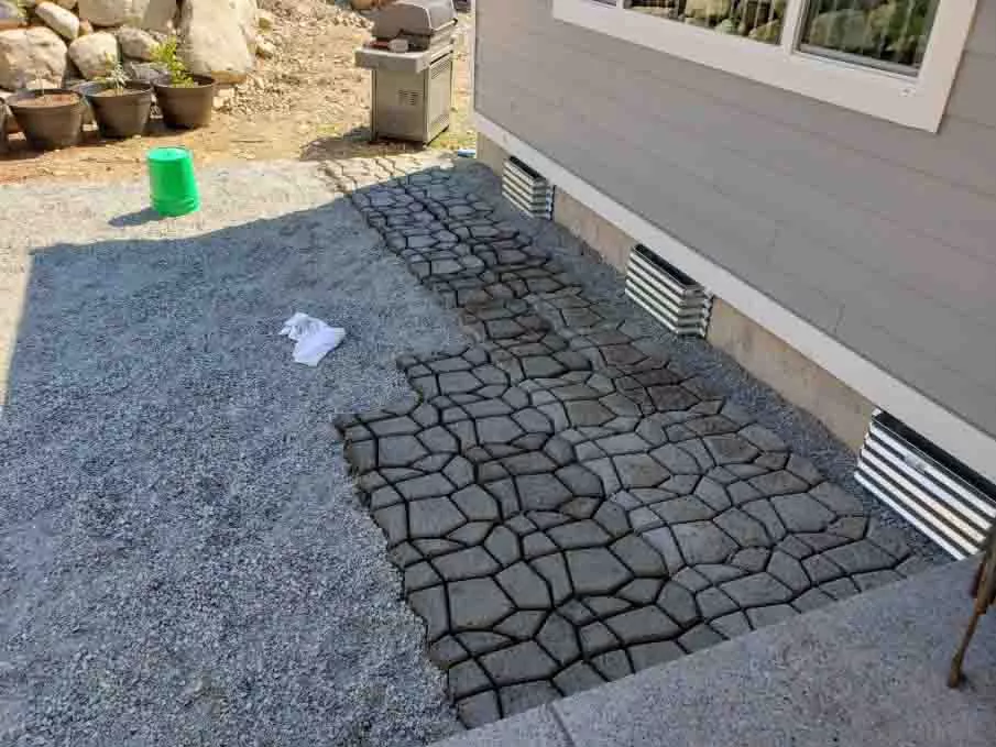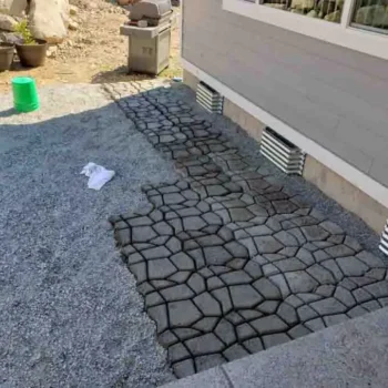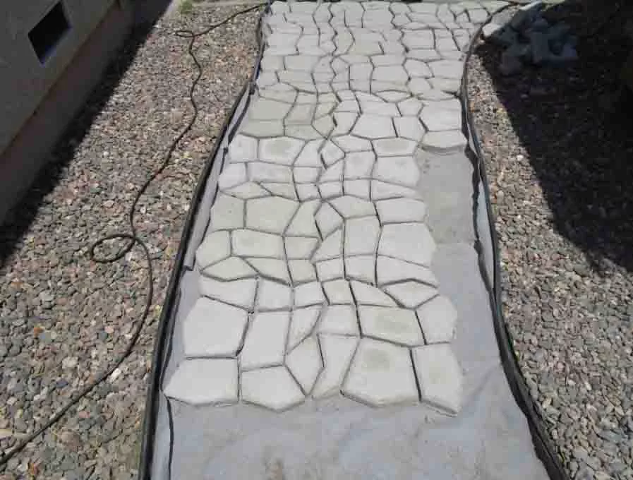I love this stone walkway mold. It is so simple to use. Each side has either an “out” or “in” pattern. Simply match your next section so it interlocks.