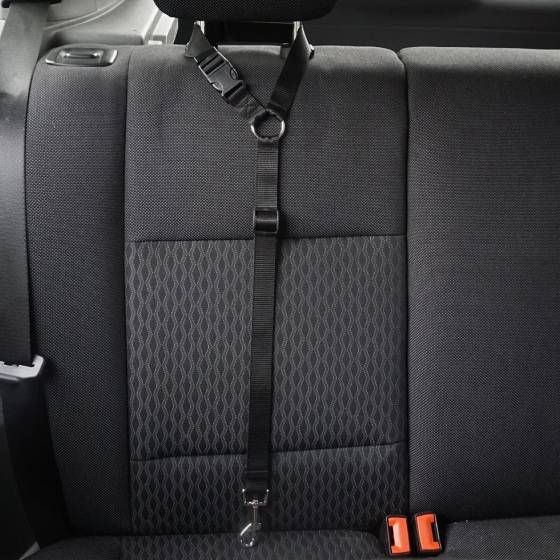 It is better for our dog and vehicle than seat belts that fasten into a seat belt slot. Those release if the button is pushed - like when a dog steps on it. This attachment to the headrest does not have that problem. Easy to attached/remove from the headrest if necessary but holds a dog in the backseat properly. No jumping out a window or open door; no injury from being thrown into the front seat if there's a sudden stop; etc. Clips onto a loop on the chest side of a vest-type collar. I wouldn't want to attach any restraint on a "choke" collar.