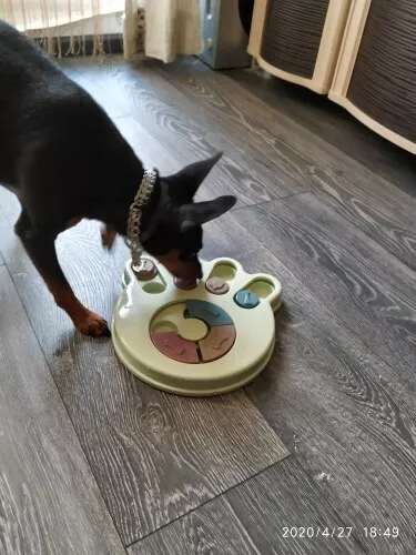 Entertaining feeder for a puppy, I like it, with pleasure looking inside the delicious.