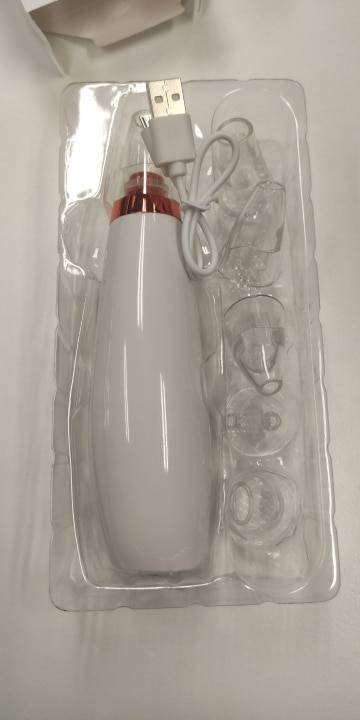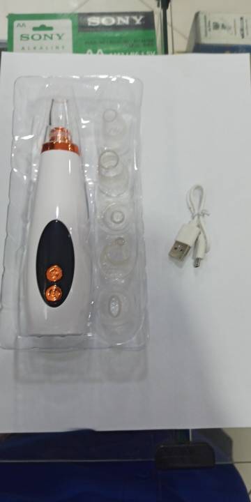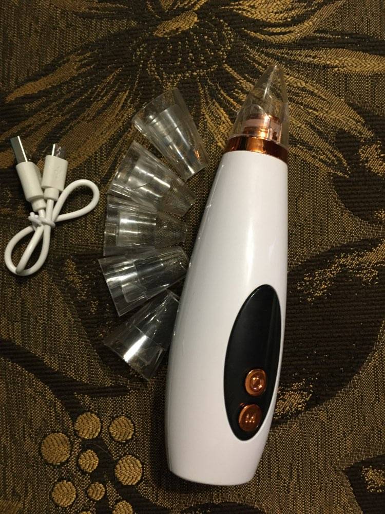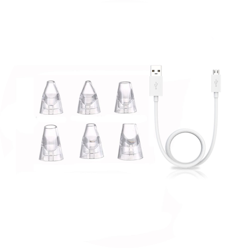 Each Electric Rechargeable Blackhead Remover comes with a USB charging cable and six extra nozzle heads to treat the face and body.