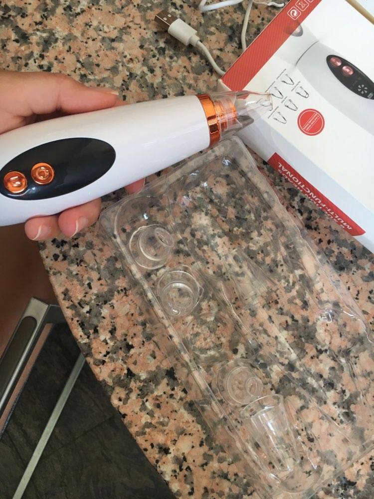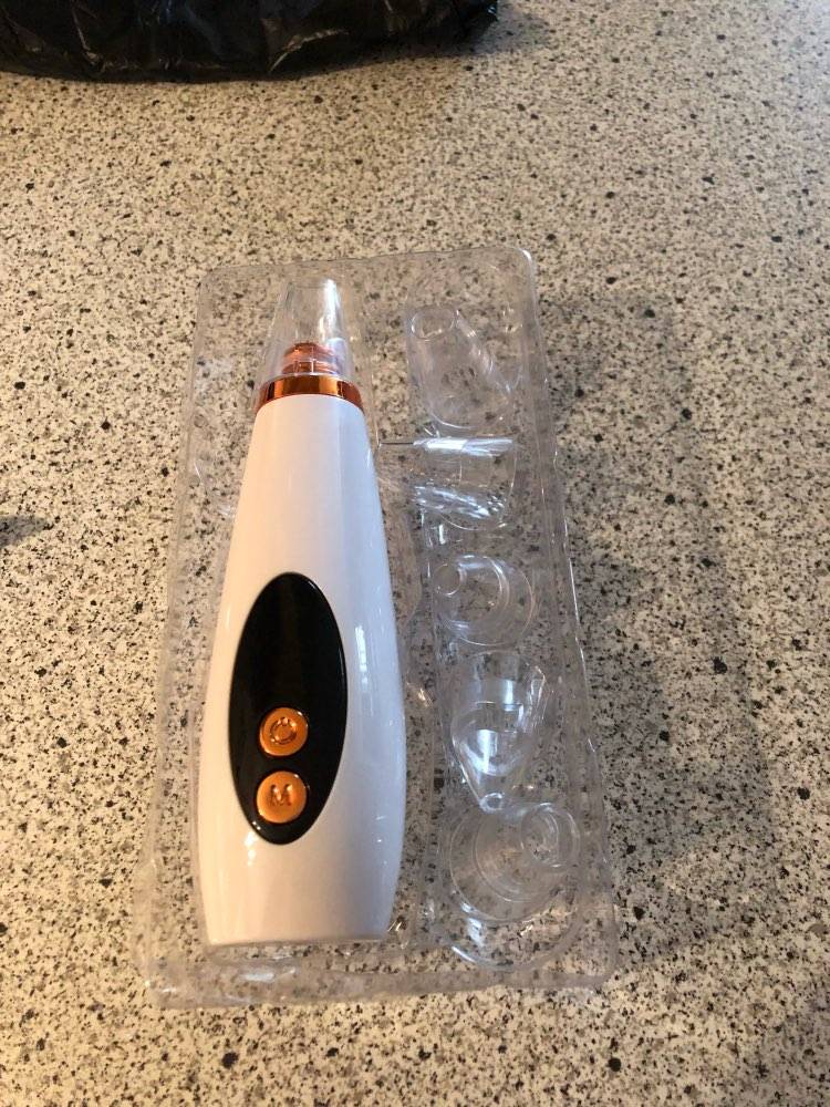 The product looks very nice and handy. It has different heads and different modes to use to clean the skin. I used it on the nose and jaw. And it can really take out clogged oil and some blackheads. But don’t use it on the same area too long, because it can make the area red because of its strong suck.