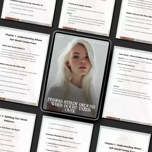 If you’ve ever felt your confidence quietly slip away, leaving you stuck in overthinking and second-guessing, this guide was created for you. Finding Steady Ground When Doubt Takes Over is a practical, emotionally supportive digital resource designed to help you untangle the roots of self-doubt and rebuild your sense of inner trust. Instead of vague motivation, this guide delivers clarity, structure, and actionable steps so you can move from uncertainty to steady self-confidence at your own pace.