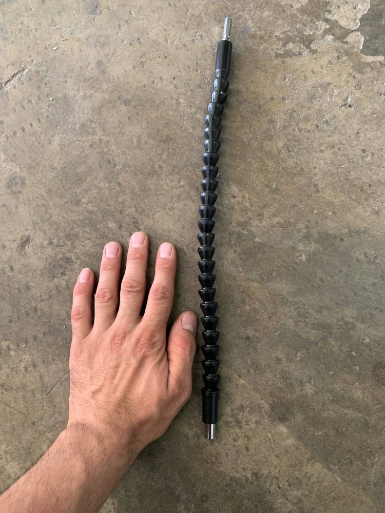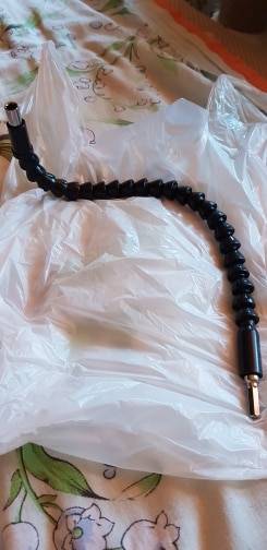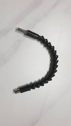 It can be flexible, it can be bent to any shape. Lately I've been drilling pictures and tables, when I didn't have this extension bit drill, there were screws that I was very hard to drill because I didn't have the right position. Now when I'm not in the right posture, I can still drill very easily and comfortably. It is very sturdy, I fear it will slip out of the drill but not. It works better than I thought and expected. In general there is nothing to criticize.