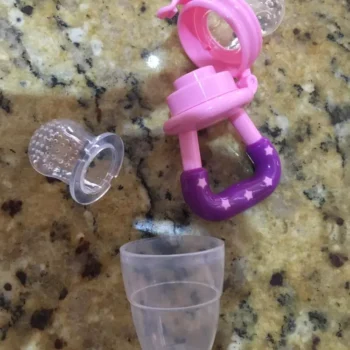 Love these! Although the large one doesn’t hold as much food as the mesh feeders they’re easier to clean and the holes are larger. I keep them in the fridge so they’re extra cold for teething. They’re super easy to clean and the nipple part detaches. My 7 month old gets excited when she sees this!