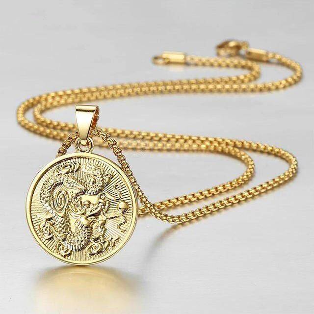 The Dragon Pendant Necklace stands out with its meticulous design and exquisite craftsmanship. The pendant, showcasing a round Chinese dragon in stunning detail, is crafted from high-quality metal with gold plating, ensuring both durability and an elegant shine. The pendant measures 27*27mm, making it an eye-catching yet comfortable size to wear. Paired with a stylish link chain, adjustable between 18-30 inches, this necklace offers both versatility and a trendy edge.