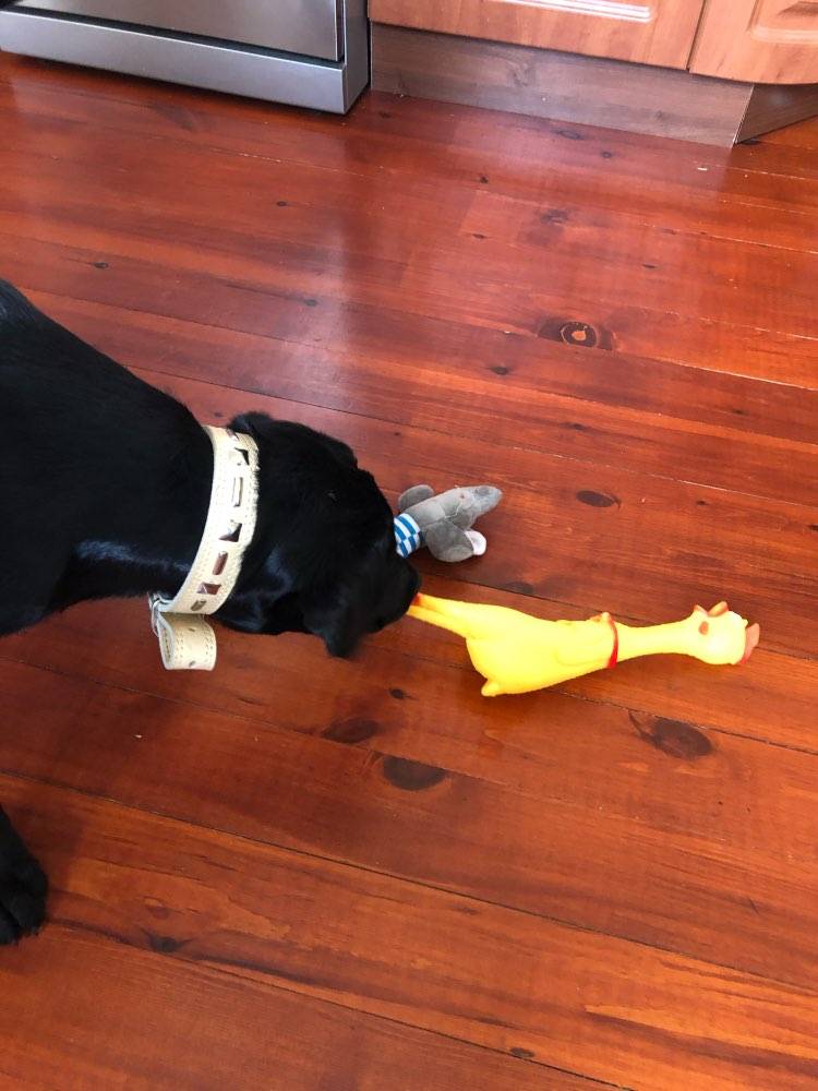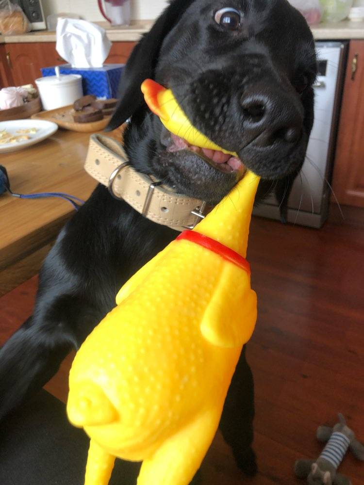 The dog is happy! Very funny toy! The mistress is happy too!