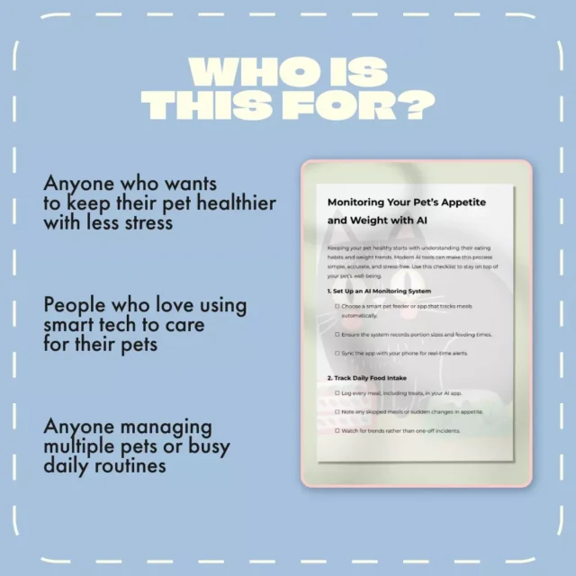 Start building a healthier, happier routine for your pet today. Download the Monitoring Your Pet’s Appetite and Weight with AI checklist now and let intelligent insights guide your next step in pet care!