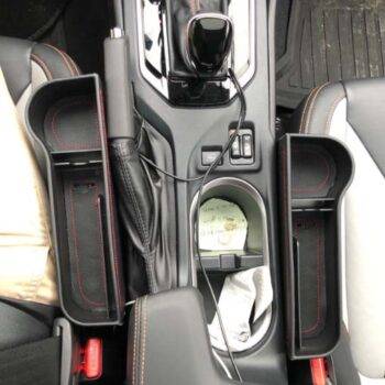 This is a great solution if you ever find yourself not having enough space to place items. However, make sure you look at your front seats and make sure your emergency brake isn’t on the side you would want the car gap to fit. If you have an emergency brake right next to your seat it won’t fit correctly. Overall, it’s a great product especially the bag hooks I use it to hang my umbrella and my purse.