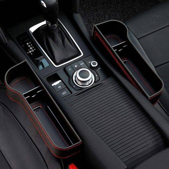 Each organizer features a phone slot, charger hole, drink holder space, and card slot for organized storage.