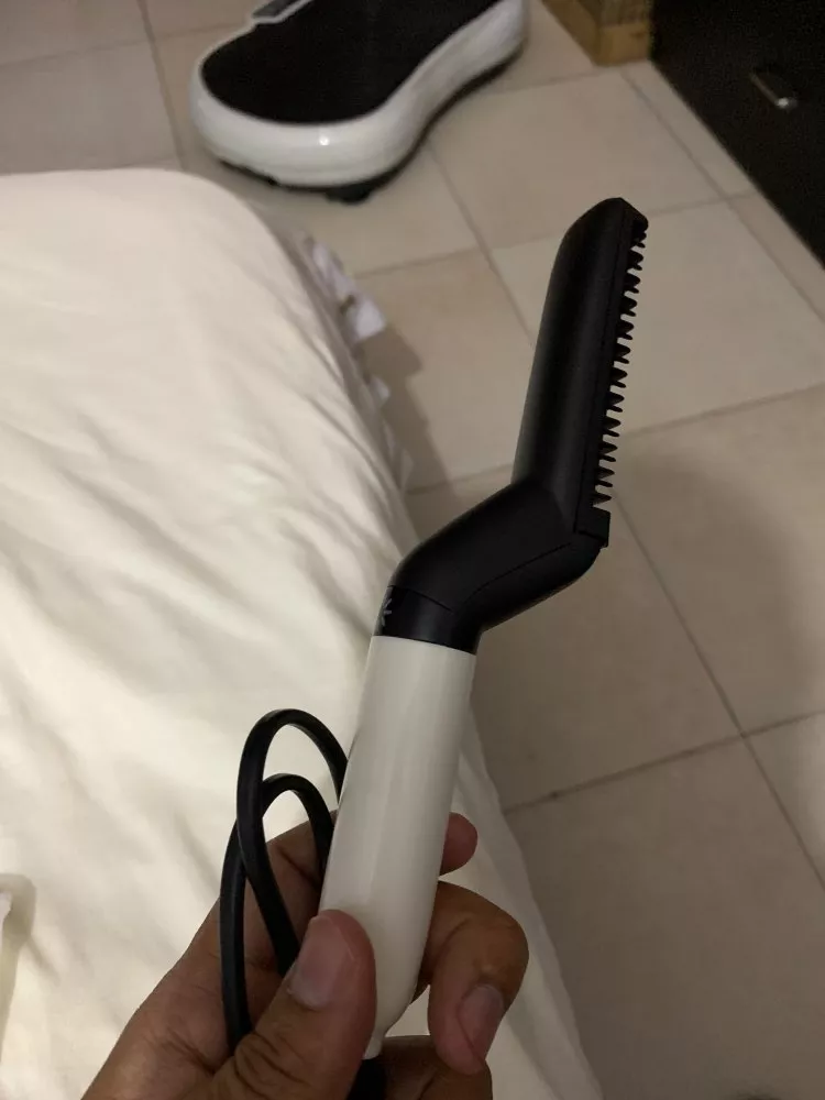 Got this comb and beard straightening brush for me. No time to care for the beard and sometimes looks messy. This beard straightener takes a while to heat up quickly. Very good product, easy to use and nice design. Lightweight makes this very useful and it works very well with the curly beard and hair makes it look neater and soft. Suitable for ones who want to look perfect on any occasion.
