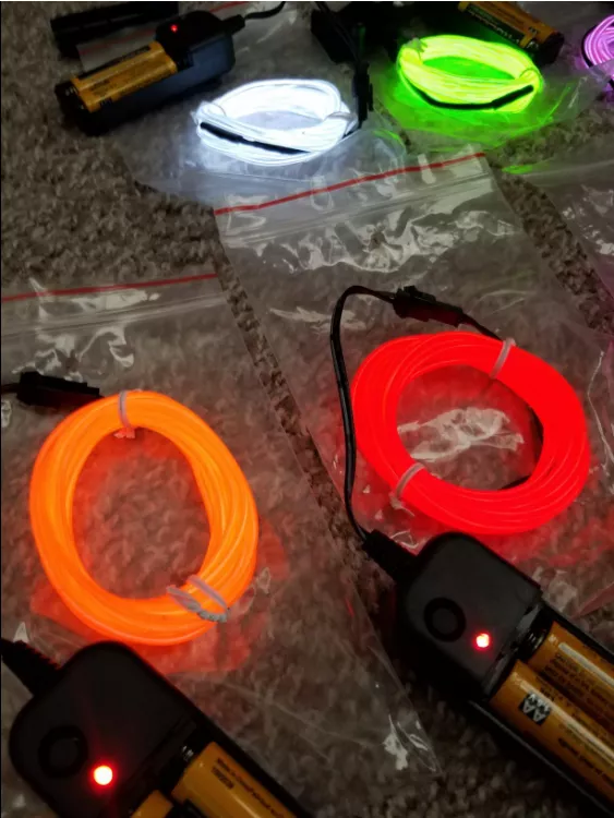 These are great! I used them to make faux neon signs for my friends for Christmas. I bent a piece of wire into their names, and then I hot glued the EL wire to that. They’re true to color, bright and and easy to work with. They do make the buzzing sound that I’ve seen other people mention in their ratings, but it is really only noticeable if you’re right by the item when it’s turned on.