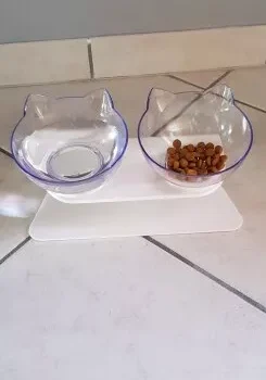 I have an elderly cat and thought that the slight tilt and elevation of these bowls would be less strain on her. It's super cute and she does seem to be doing well with it. The only thing I would mention is that making the bowls a little more easily removable from the base may be helpful, especially when refilling the water bowl. Overall, glad I purchased it.