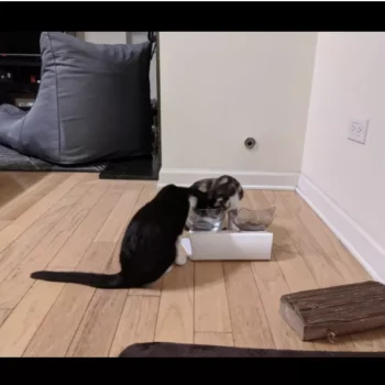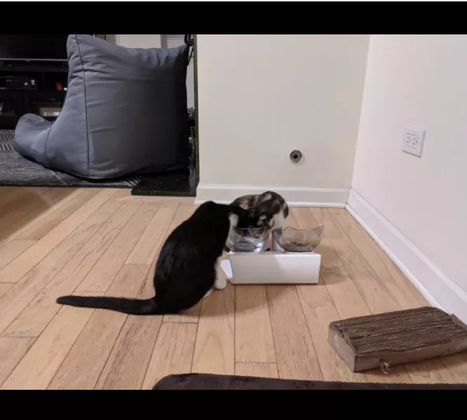 My husband has been reading that cat's need to have their food bowls raised slightly off the floor for better eating ergonomics and comfort. I got this and it has been a perfect solution. They both adjusted to it very quickly! The bowl shapes are very easy to clean out and there is a little lip that they stick into that helps prevent them from tipping over. I might even buy a second one so that both cats can have their own feeding stations.