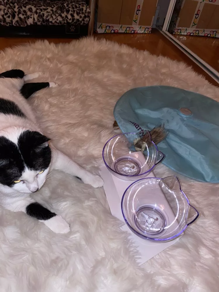 This is adorable and came super fast - my cats decided they won't eat out of the food bowl we've had for years, so I ordered this! My cats are pukers so hopefully the elevated and tilted bowls help. I like that the bowls are small so food doesn't go bad sitting out, and they "screw in" to the base so they don't knock over, and it's just overall adorable!