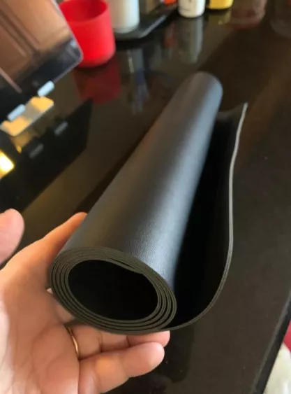The mat comes curled up so it takes a few days for it to flatten out, there was not much smell either to air out. Cannot complain, and I bought 2 more for my inlaws as a gift so that they could cover another surface. Questions sent to seller were answered quite promptly. So far so good!