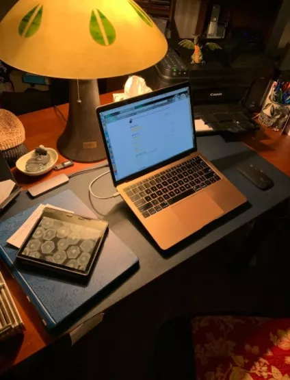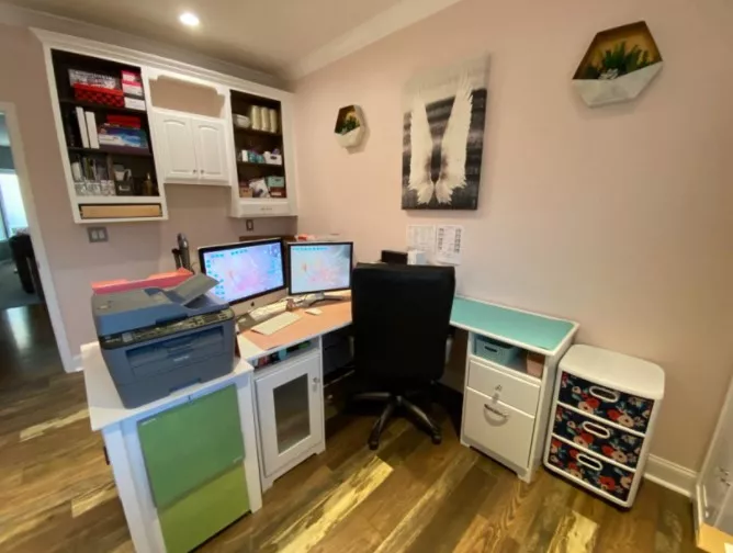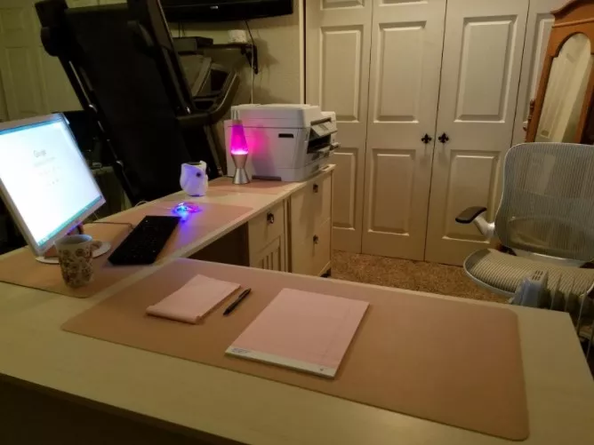 Since quarantine knocked me back to working at home (attorney), and we have a built in desk in the kitchen (we have A home office/music room but it’s not super conducive to my working since my husband also works at home), I use my laptop at home but I like to have the separate mouse and didn’t have a mouse pad.