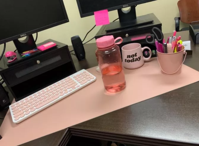 •The material makes it easy to clean: which is good cause I eat on my desk a lot!