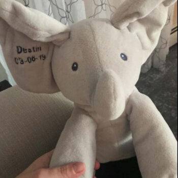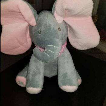 My daughter received this as a gift and let me tell you, it is THE cutest singing stuffed animal i have ever seen! It’s such great quality, so so soft and well made and the voice is super cute. (Not creepy like some!!) The elephant’s ears move to the music and play peek-a-boo with baby. It’s held up great so far even with my 1.5-year-old pulling on the ears and pushing the buttons a hundred times a day! We show this off to everyone! I think it will become my go-to baby gift for friends now, and would definitely purchase another one if anything were to happen to ours. I am shocked at the price, something this great of quality and cuteness would generally be upwards of $35-40, so at this price is the perfect buy!!