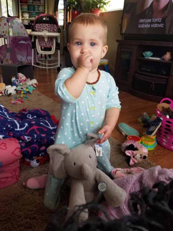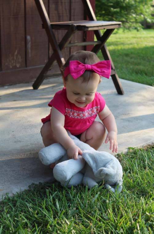 I found this elephant on lightening deal and it had great reviews. I decided to get it for my newborn and she loves it. I use it for when I change her diaper. it sings a song and also plays hide and seek. It’s ears come down over its eyes and then back to normal. It is very cute and babies love it! It is a decent size as well.