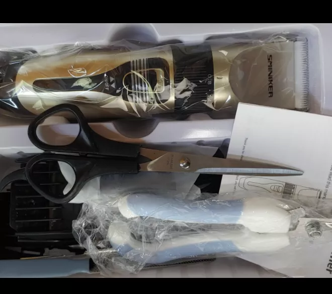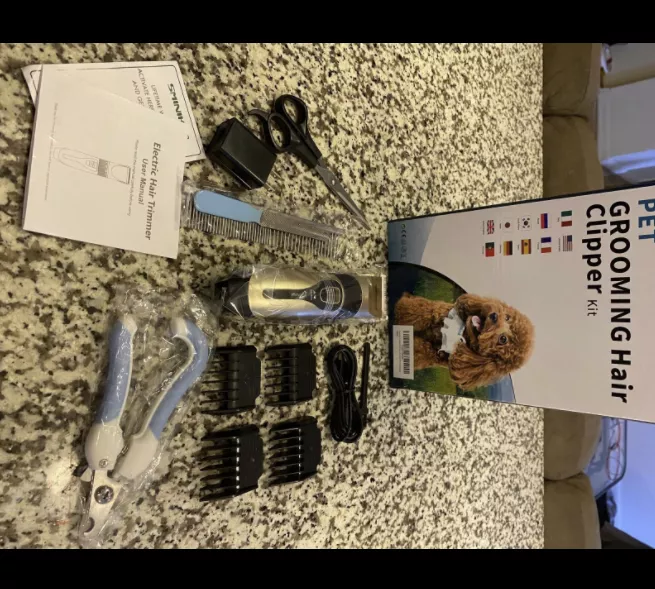 I liked that the set included everything needed for grooming - scissors, different sized combs for the shaver, nail clippers, & a nail file! It also included a tiny brush to clean the inside of the shaver. When you turn on the device, the noise is very low and did not scare any of my dogs. My only complaint is that the charge light for my device never turned green no matter how long I charged it for (and I even kept an eye on it because the recommended charge time was 3 hours). Still, it was completely functional and easy to use. Make sure to use the scissors to trim long fur before going in with the shaver. The fur does get everywhere, so I usually go out into the garden and put my dog on a little table so that he won't move around as much. Also, clean the inside after each use so that the device doesn't get clogged. It's super easy to pop the blade portion out and back in! Definitely a great product for dog owners who want to groom at home (especially during the age of Covid, when we can't really go to the groomers'). Worth the investment for this all-in-one grooming kit!