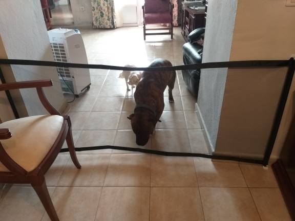 Super lightweight and easy to set up! We wanted to get away from the bulky dog gates and tried this magic gate out in hopes that it would be more aesthetically pleasing, and it did its job!