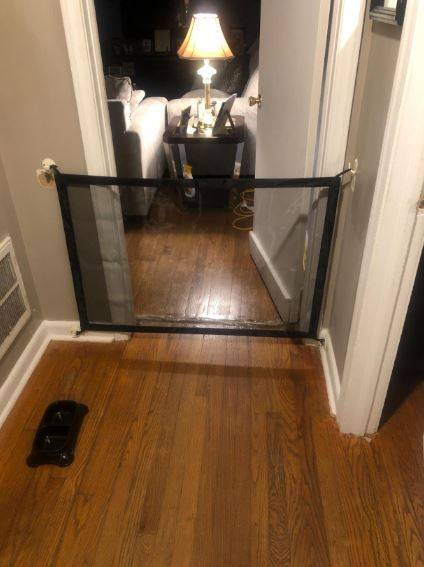 Holy smokes, this gate is awesome. It was so easy to stick the little hooks up and boom!.. it’s up. Looks great and won’t leave marks on my walls like my old wooden gate. Plus it came with extra hooks.