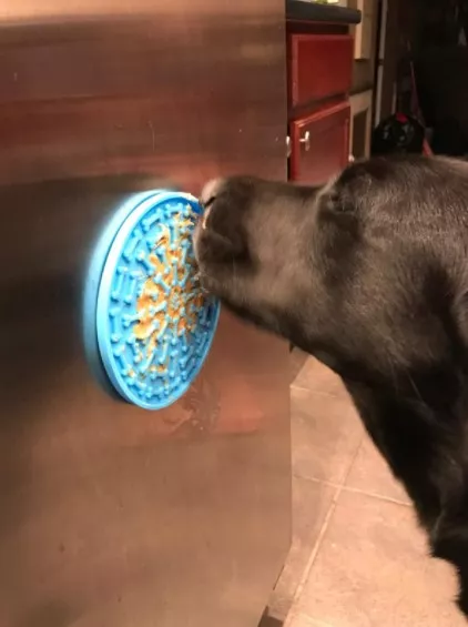 These are absolutely awesome!! I have 2 puppy who LOVE their peanut butter. This suctions right to the fridge and these keep them busy for a good 15-20 minutes (allowing me to catch up on a tad bit of housework haha!) Highly recommend!