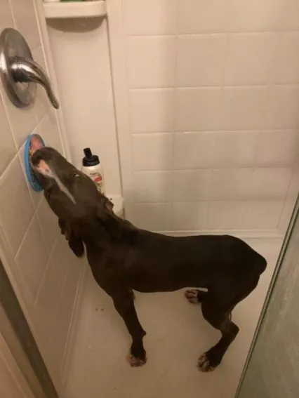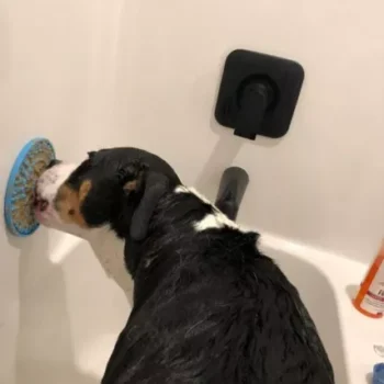 This dog lick mat is great for my dog's bath time. I just put peanut butter on it and stick it to the wall of the bath tub. It keeps my dogs entertained while I bathe them. They used to hate bath time but not when I use this mat.