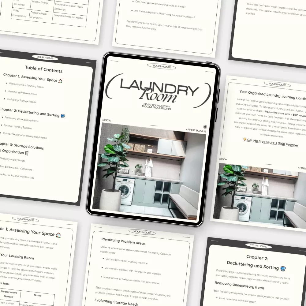 Take control of your laundry space with Smart Laundry Room Solutions — the ultimate digital guide to transforming clutter into calm. If you’ve been searching for expert advice on how to organize your laundry room and make it a functional, stylish part of your home, this eBook is for you. Download your copy now and start your journey toward a smarter, cleaner, and more efficient laundry experience!