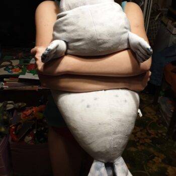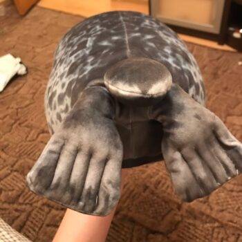 My boyfriend loves seals so when I saw this I just had to get it for him! It’s very soft, fluffy and squishable. However, based off the pictures I thought it was going to be a little bigger. Boyfriend still loves it though! He uses it as a travel pillow! Ha!